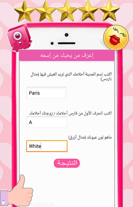 لعبة الحب الحقيقي: مقياس الحب واختبار الحب. لعبة البنات العاب حب والعشق التطبيق يعتبر من أفضل العاب بنات جديدة جدا في إمكانية عمل حاسبة الحب، يمكنك ادخال اسمك واسم من تحب والحصول على نسبه التوافق بينكما من خلال تقارب الاحرف . البرنامج يقدم لك اسئلة سهلة وسريعة لكي تعرف فرصة زواجك وفي الحب ! العاب الحب الحقيقى لا يجب الإعتماد على نتائج اختبار الحب. هو فقط مجرد لعبة للتسلية والترفيه.