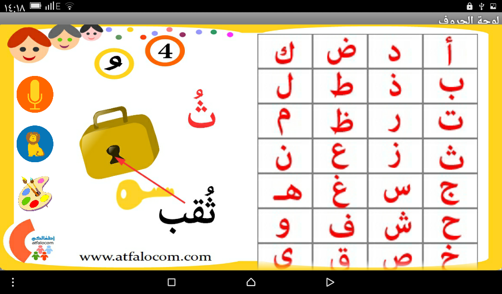 من خلال التطبيق يمكن للمستخدم تعلم القراءة والتعرف على الكلمات بالصوت والصورة