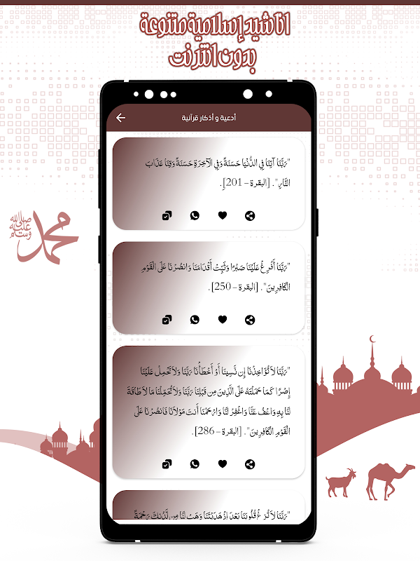زیباترین آهنگ ها از معروف ترین شعارها جمع آوری شده است ، از جمله Al-Afasy ، Maher Zain ، Masoud Kurtis و گروهی از شعارهای خلیج فارس
