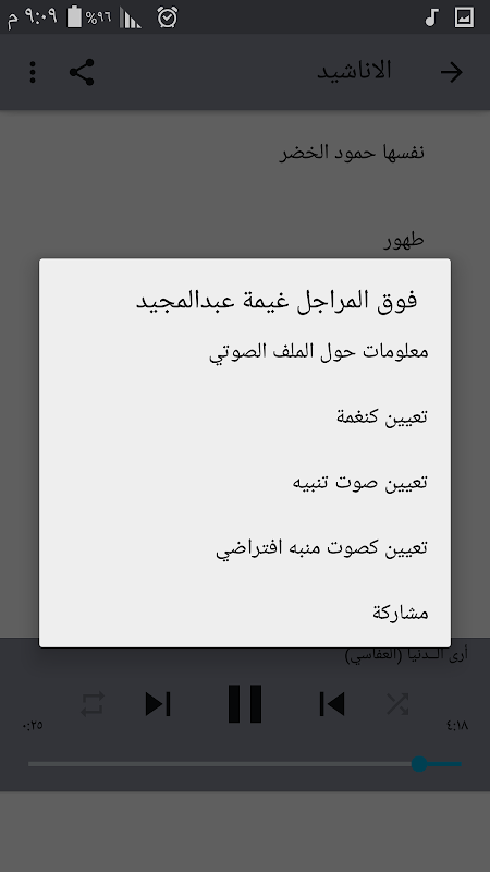 آهنگ های مشاری الافاسی، آهنگ های ماهر زین، آهنگ های حمود الدار، آهنگ های فاضل شاکر، آهنگ های عبدالمجید الفوزان، آهنگ های رامی محمد، ترانه های سامی یوسف، ترانه های احمد ابوخاطر و ترانه های مختلف اسلامی