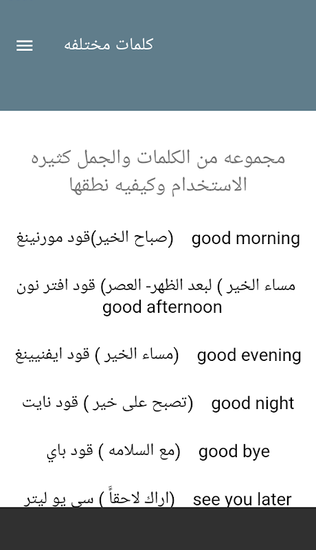 اطلاعات اهم كلمات اللغه الانجليزيه APK