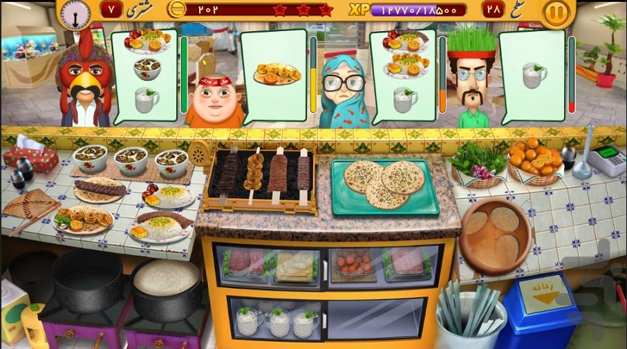 کافیه با پولایی که جمع کردی سلیقه درجه یکت رستوران این بازی ایرانی رو رو نونوار کنی، وسایل جدید اشپزی برای آشپزخونه بخری، غذاهای جدید بپزی، مغازههای جدید افتتاح کنی. خلاصه امپراطوری غذای شهر رو بگیری دست خودت!