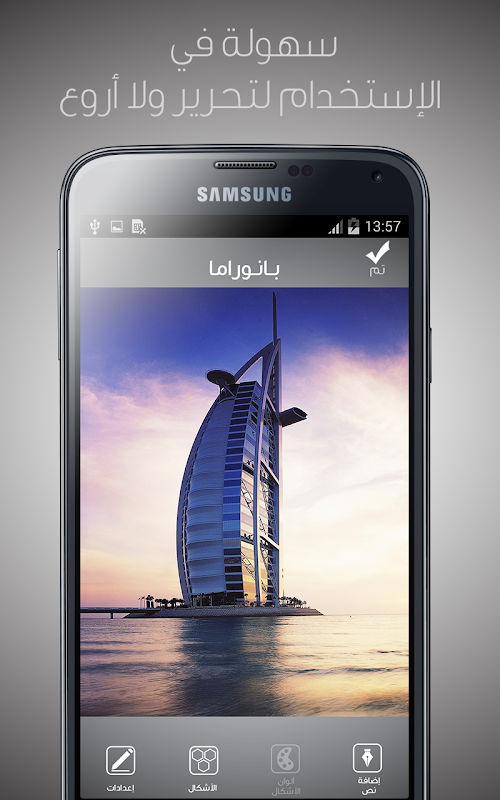 بانوراما الصور المصمم المطور الستوديو العربي الأضخم لتحرير الصور المميزة و المختلف تماماً عن تطبيقات تحرير الصور المعروفة لديك، بانوراما الصور المصمم المطور ليس فقط يتيح لك إضافة مؤثرات جمالية و ألوان للصورة. ولكنه تطبيق يوفر لك استديو متكامل لنأخذك من خلاله بتجربة مميزة جداً لتحرير الصور و إضافة مؤثرات بصرية إحترافية و معالجة الصور، لتتمكن من خلاله صنع صور مشابهة لمشاهد أفلام هوليوود التشويقية، و إضافة خدع بصرية لصورك و إبهار أصدقائك.