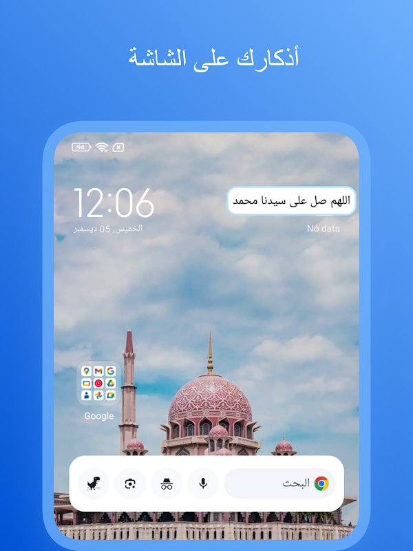 نمایش خودکار ذکر بر روی صفحه گوشی بدون نیاز به باز کردن برنامه.