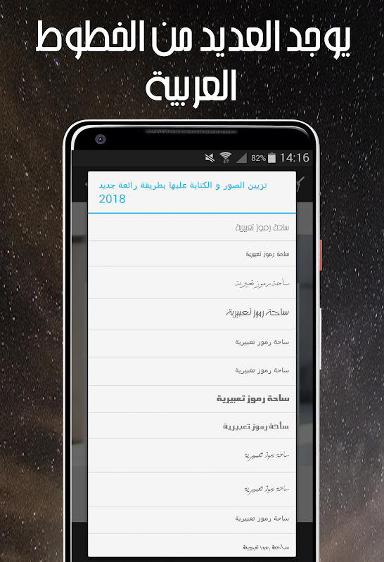 - ستجد في تطبيق تزيين الصور و الكتابة عليها بطريقة رائعة خطوط عربية مميزات جد كثيرة يمكنك من كتابة اسمك و اسم حبيبك على صورة جميلة