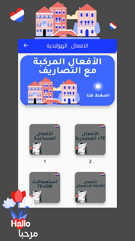 برنامه "Hilo-Hollander" برای یادگیری هلندی شامل موارد زیر است: