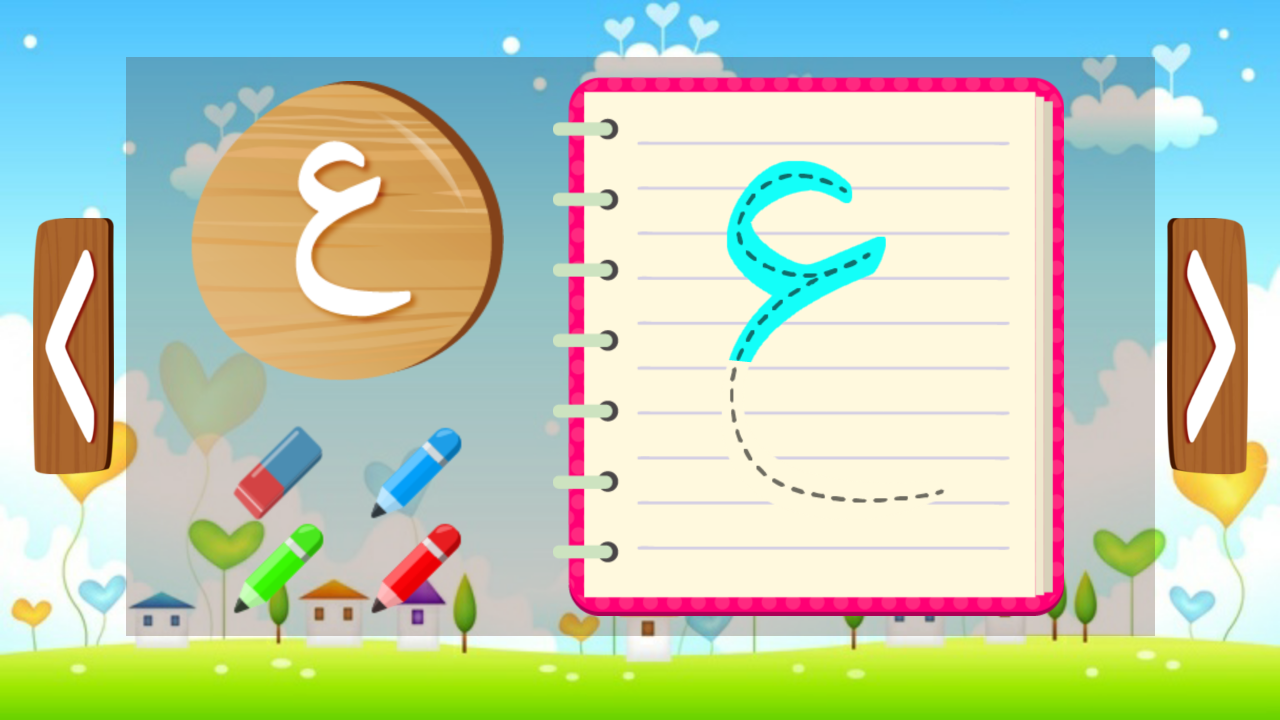 یادگیری نوشتن حروف عربی ، برنامه کاربردی آسان و سرگرم کننده ، مناسب برای کودکان ، به گونه ای که امکان یادگیری و سرگرمی را همزمان فراهم کند ، روشی جدید و مؤثر برای آموزش کودکان برای نوشتن حروف عربی صوتی و تصویری به ویژه برای کودکان بالای دو سال و برای بزرگسالانی که سواد ندارند ارائه می دهد. ، و حتی خارجی هایی که می خواهند یاد بگیرند که حروف عربی بنویسند.