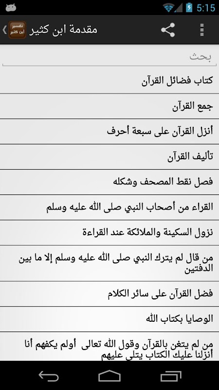 الآن التطبيق الأفضل والذي يشمل "تفسير إبن كثير" بأكمله بدون الحاجة للإرتباط في شبكة الإنترنت، يشمل التطبيق عملية بحث واسعة ومريحة، بالإضافة الى ترتيب كامل للتفسير، وسهولة القراءة
