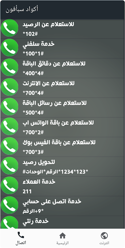 این برنامه دارای اکثر شماره های خدمات عمومی و خدمات شرکت های تلفن همراه است تا بتوانید به راحتی به آنها دسترسی داشته باشید و فقط با یک کلیک می توانید بسته هایی را برای همه شبکه ها نصب کنید ....