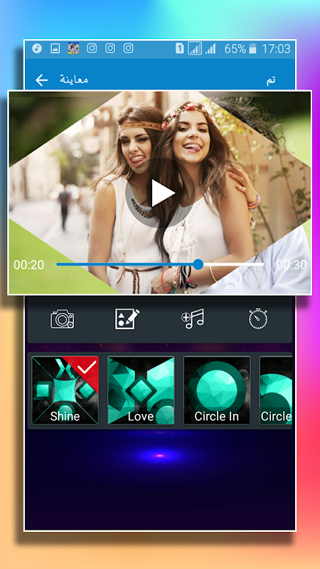 ✔ يمكنك معاينة ما قمت بصناعته قبل حفظ الفيديوا في الهاتف