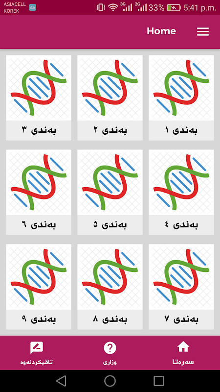 ههروژى تاقیكردنهوه دهكهیت له تهواوی كتێبهكهدا و پاشان نمرهكهت بۆ مشاهدهنرێ.