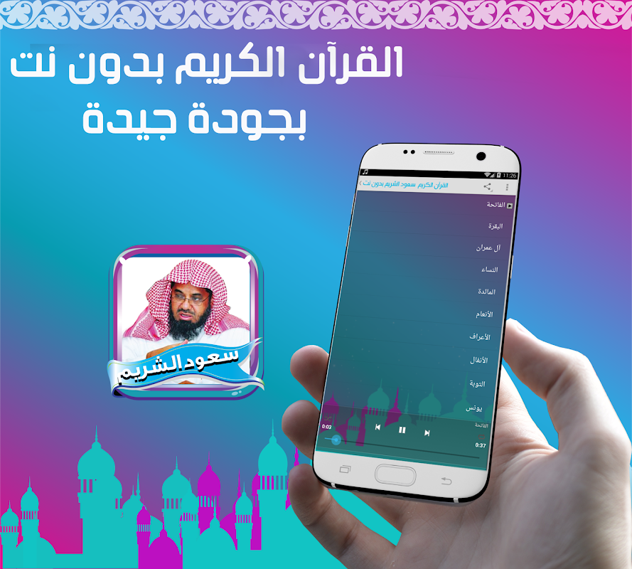 تطبيق القران الكريم بصوت القارئ سعود الشريم بدون أنترنت