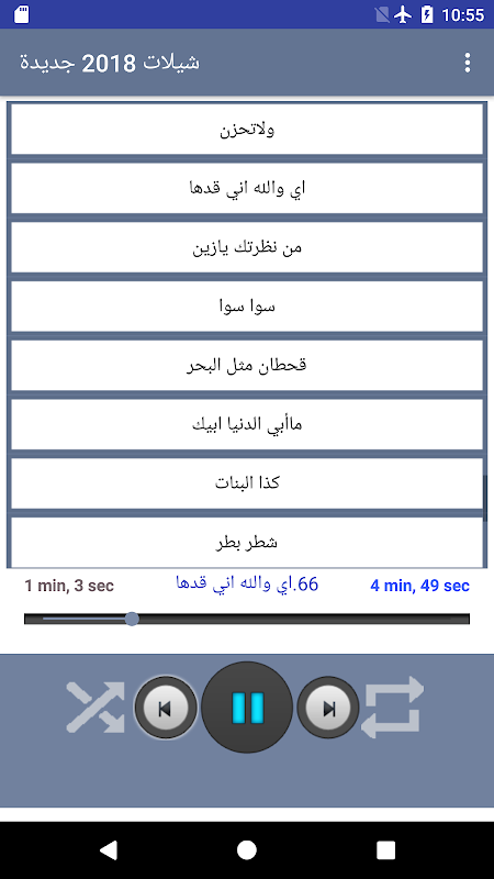 يحتوي التطبيق على شيلات مختارة جديدة بدون نت اذا كنت من محبي الشيلات الطربية والحماسية فهذا التطبيق مصمم لك