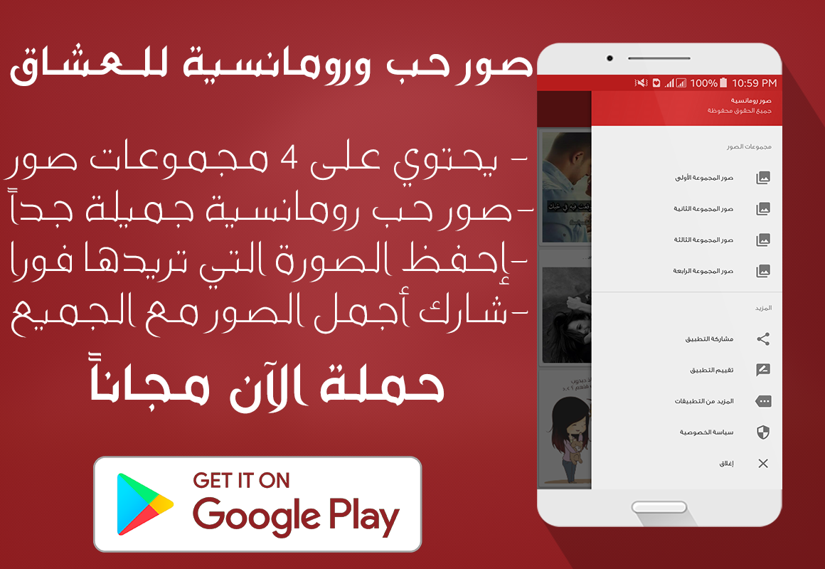 اذا كنت تبحث عن صور,صور رومانسية,صور حب وغرام , صور الحب لايفهم من الكلام فقد وصلت للتطبيق الافضل تطبيق صور حب ورومانسية للعاشقين - Romantic .