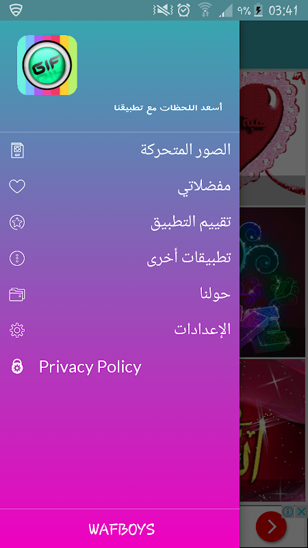 برنامج صور متحركة للواتس آب المنوعة والمرغوبة ... يحتوي على مجموعة من الصور الجميلة و الجديدة .. برنامج في غاية السهولة حيث يمكنك هذا التطبيق البسيط من خلال حفظ الصورة بالاضافة الى مشاركة الصورة مع اي شخص ترغب مشاركة الصورة معه ... كما ان الصور جديدة وحديثة .. لا يتطلب هذا البرنامج الاتصال بالانترنت