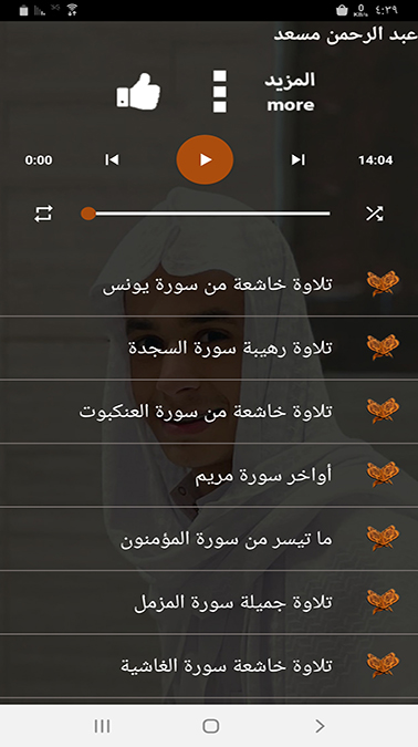 يحتوي هذا التطبيق الحديث على تلاوات عطرة للقارئ عبد الرحمن مسعد من إجمل الأصوات الذي سمعتها في حياتك.