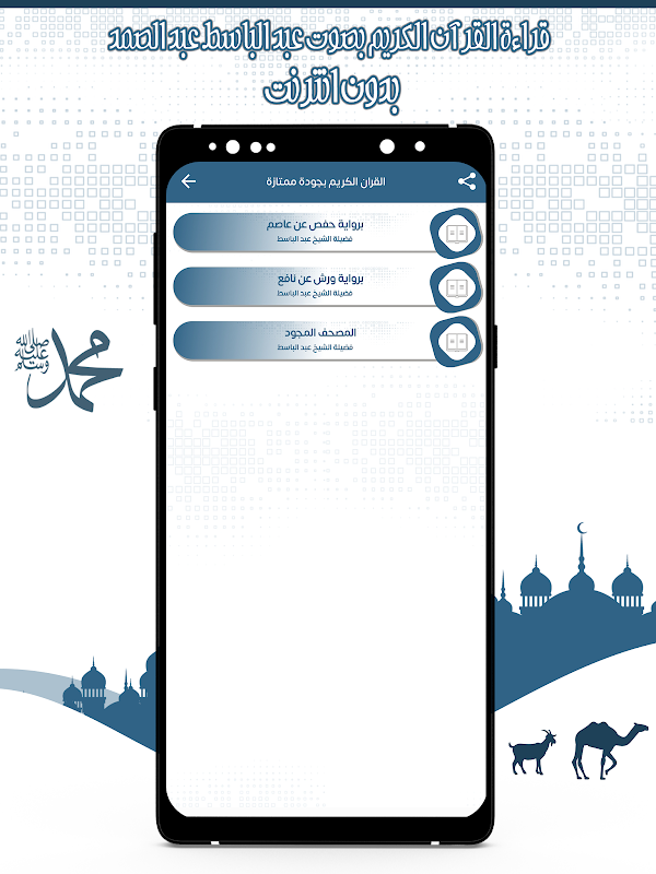 دریغ نکنید و اکنون برنامه را بارگیری کنید و با استفاده از قرآن کریم در صدای عبدالباسط عبدالصمد از یک تجربه ایمانی متفاوت لذت ببرید.