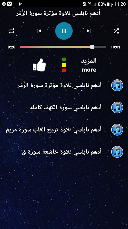 يحتوي اتطبيق على قراءة خاشعة و مؤثرة للقران الكريم بصوت القارئ الذي ادهش الجميع أدهم نابلسي بدون انترنت