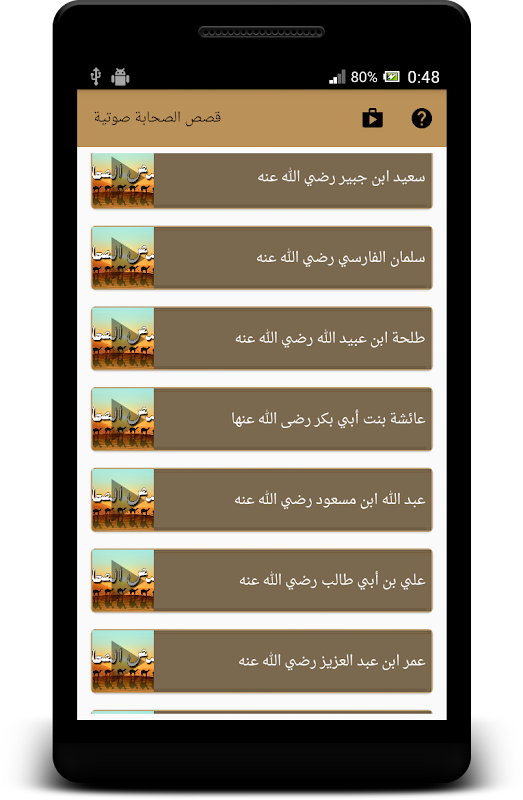يشتمل تطبيق قصص الصحابة بالصوت - بدون نت على مجموعة من الحكايات تروي بعض من حياة الصالحين اللدين اصطفاهم الله ليعاصرو الرسول صلى الله عليه و سلم من بينها