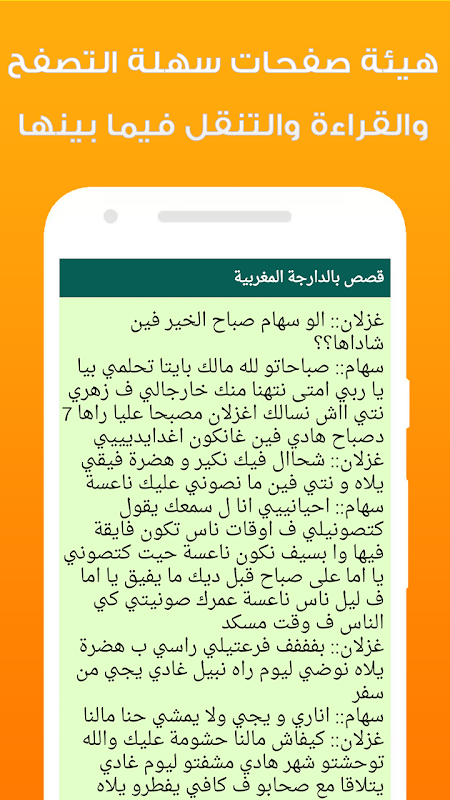 تطبيق قصص بالدارجة المغربية 2 بدون أنترنت يقدم لكم قصص من الواقع المغربي، قصص خيالية وأخرى حقيقية والتي قلما تجدها في زمننا الحاضر وكلها لأخد التعلم والعبر من أخطاء الغير .