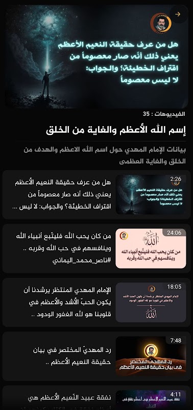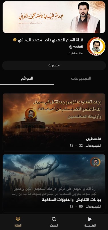 اپلیکیشن کانال رسمی امام مهدی ناصر محمد الیمنی برای کسانی است که دوست دارند ندای امام مهدی ناصر محمد الیمانی را از طریق ویدئوهای ویدئویی مشاهده کنند.