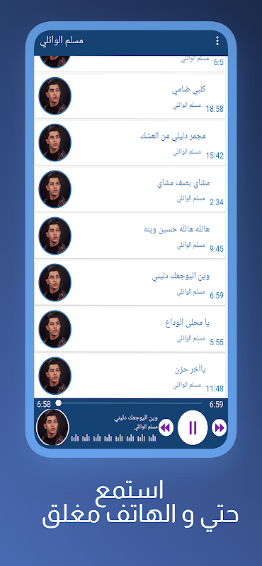 اپلیکیشنی که شامل تمامی آهنگ های جدید، قدیمی و اختصاصی الرضعود الحسینی مسلم الوائلی بدون نیاز به اتصال به اینترنت با بروزرسانی مداوم است.