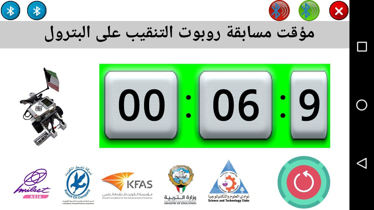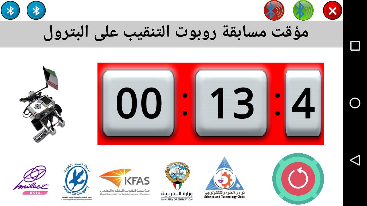 تم تصميم هذا التطبيق لحساب الزمن المستغرق لعمل روبوت ضمن مسابقة الكويت المدرسية السنوية الثالثة عشرة 2018-2019 تحت عنوان مؤقت مسابقة روبوت التنقيب على البترول