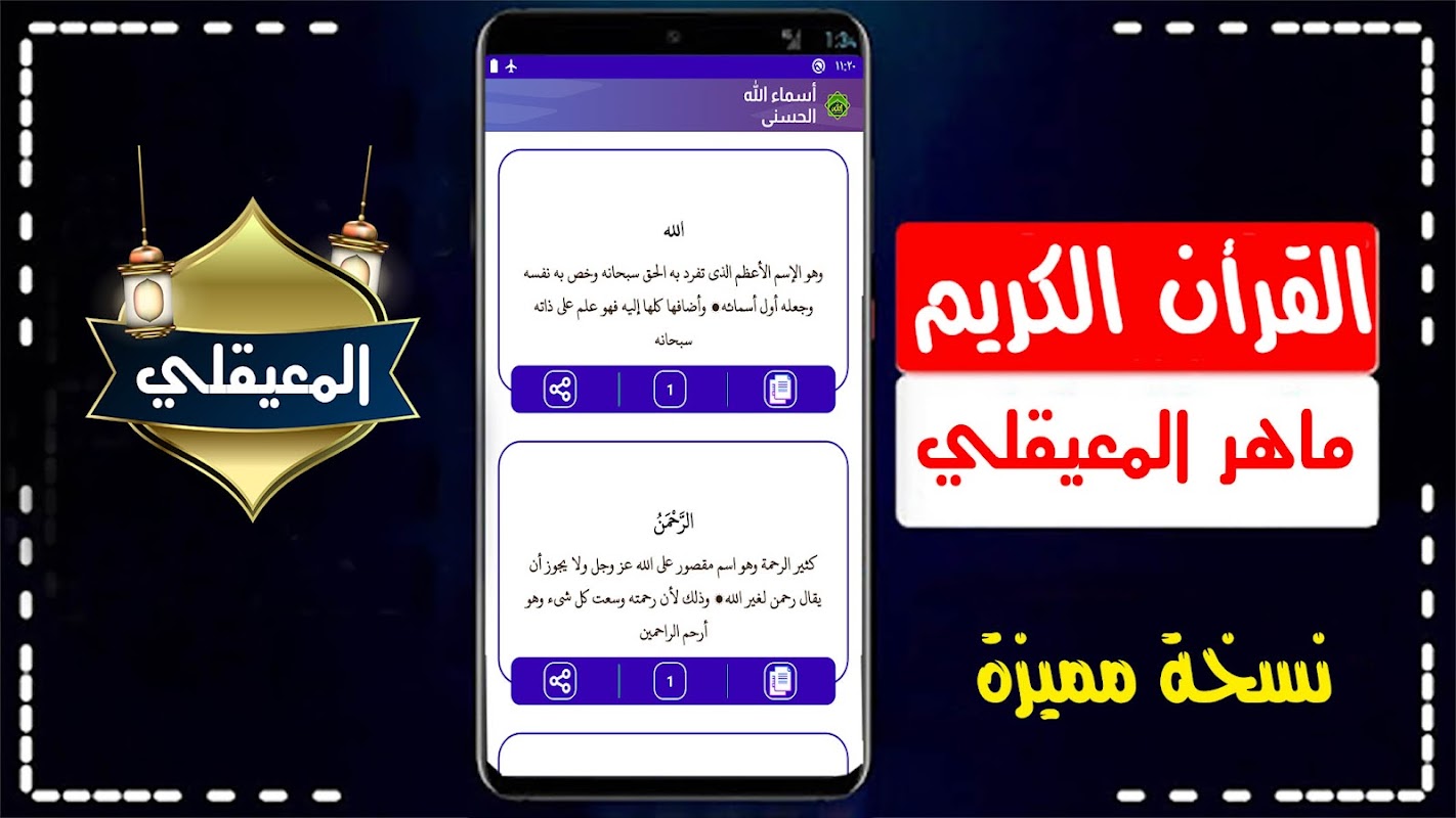 اپلیکیشن المعایقلی یک قرآن کریم کامل را بدون اینترنت تولید می کند گوش دادن به سوره های قرآن با کیفیت صدای باکیفیت.