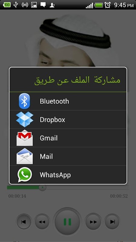 إمكانية مشاركة أي سورة عن طريق البلوتوث أو البريد الالكتروني او الواتس اب وغيره.