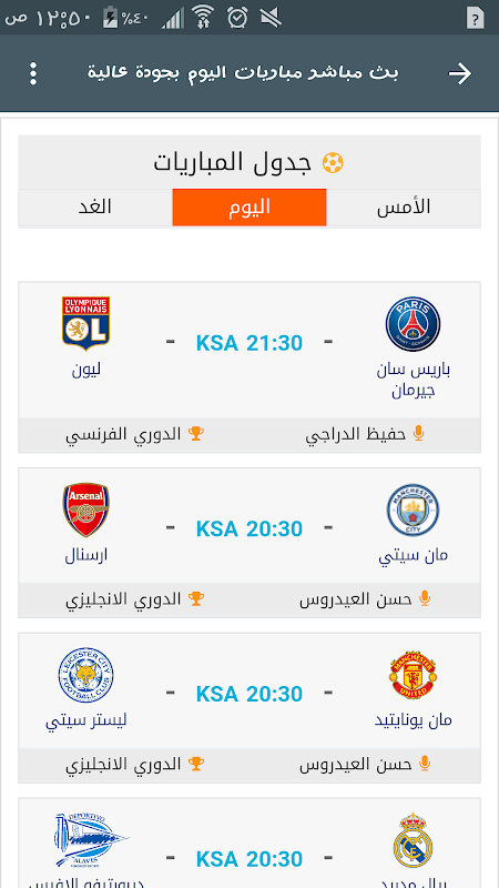 الان يمكنك متابعة باقة قنوات مباريات اليوم بث مباشر والإستمتاع بأقوى المباريات، وأقوى الدوريات العالمية، عن طريق تحميل تطبيق مشاهدة قنوات بث مباشر بدون اشتراك دون الحاجة إلى تضييع وقتك ونقودك في المقاهي والملاعب .