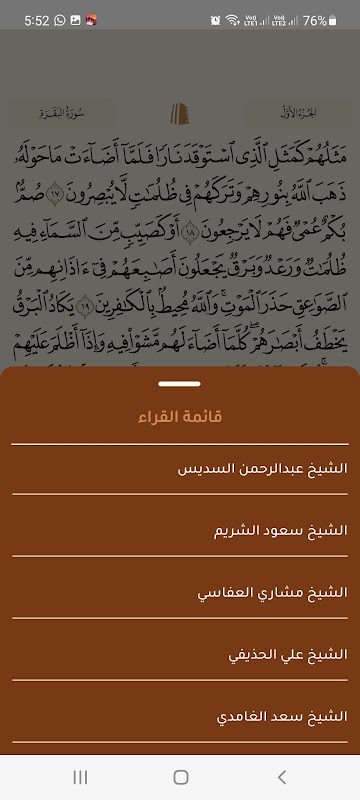 • سرویس تلاوت با صدای شیوخ: عبدالباسط عبدالصمد، عبدالرحمن السدیس، سعود الشوریم، علی الحدیفی با امکان تکرار یک آیه یا تعدادی از آیات بیش از یک بار از جمله مقدمه و تاخیر به منظور حفظ کردن