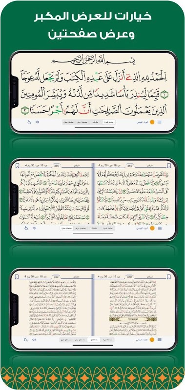 این نرم افزار از طریق ده ها ویژگی متمایز و مفید، تجربه ای منحصر به فرد را برای خواننده فراهم می کند، زیرا دارای چندین گزینه آموزشی مفید برای تلاوت با صدای بیش از یک خواننده است، همچنین معروف ترین کتاب ها و تفاسیر را با قابلیت مرور گرد هم می آورد. بدون اینترنت.علاوه بر این، اپلیکیشن قابلیت نمایش دو صفحه نمایش بزرگنمایی شده و خواندن شبانه و بسیاری از ویژگی های متمایز دیگر را فراهم می کند.