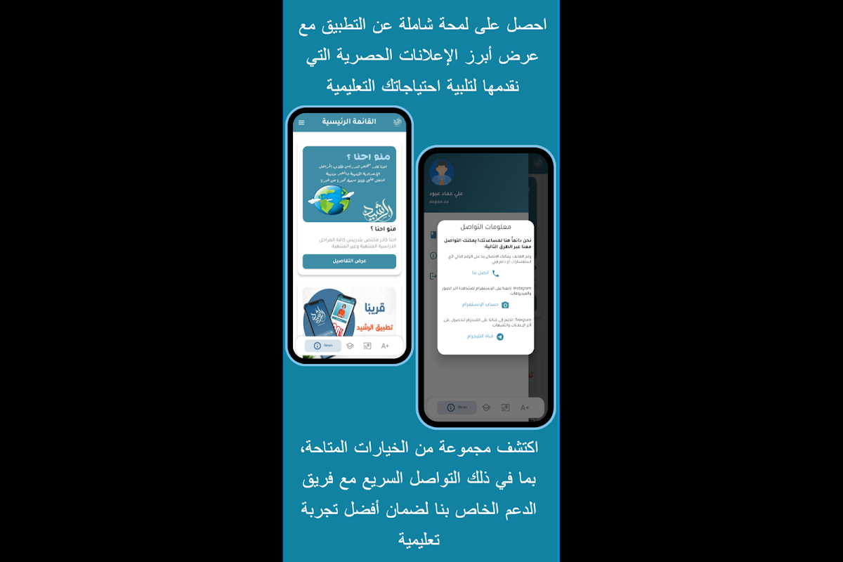 اپلیکیشن پلتفرم آموزشی الرشید یک نمایه شخصی برای هر دانش آموز ارائه می دهد که حاوی اطلاعاتی در مورد سطح او و ارزیابی هایی است که از طریق دوره های ثبت نام شده کسب می کند. این ویژگی ها اپلیکیشن را به یک ابزار آموزشی جامع تبدیل می کند که به بهبود تجربه یادگیری و توسعه قابلیت های آموزشی دانش آموزان کمک می کند.