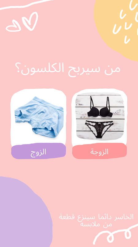 ان تطبيق من سيربح الكلسون واحد من سلسة تطبيقات زوجية هدفها الأول هو حياة زوجية سعيدة وكسر الروتين في العلاقة الزوجية