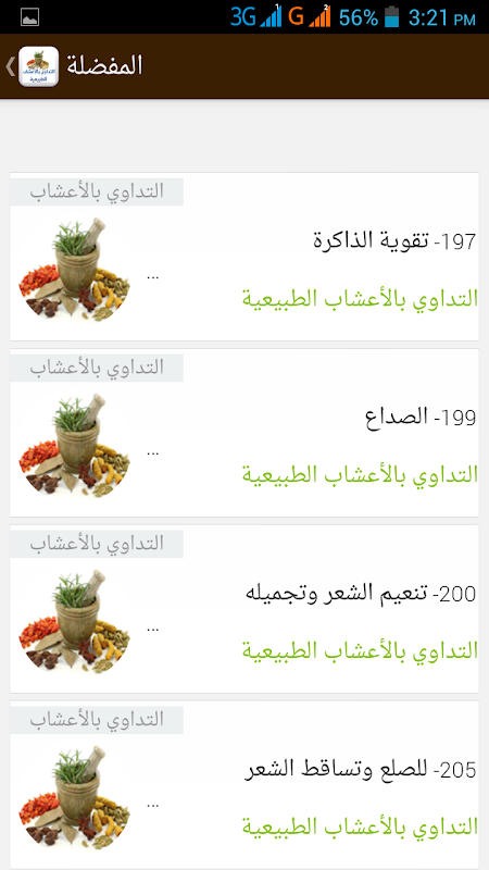 * يرسل لك التطبيق كل يوم مرضاً وعلاجه بالأعشاب الطبيعية على موبايلك وبدون الاتصال بالانترنت ولكن فقط بعد تحميل التطبيق اضغط على معلومة اليوم من داخل التطبيق