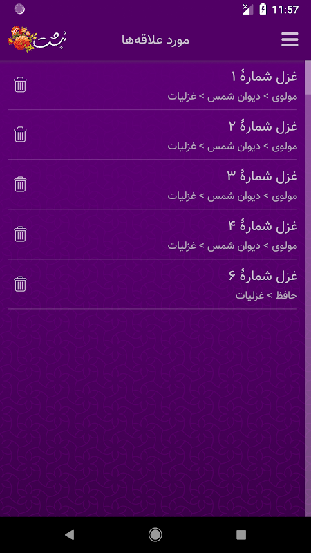 - قابلیت ذخیره سازی اشعار مورد علاقه در بخش مورد علاقه ها