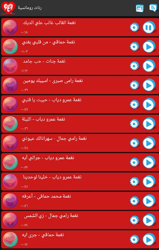يحتوي التطبيق على اكثر من 50 نغمة ورنة حب ورومانسية منوعة لافضل أغاني المطربين في العالم العربي .