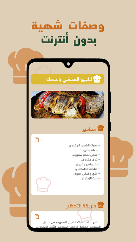 این برنامه شامل انواع دستور العمل های خوشمزه برای غذاها و غذاهای مختلف، از جمله دستور العمل های آشپزی عربی و بین المللی است. چه به دنبال دستور العمل های صبحانه، ناهار، شام یا دسر باشید، این برنامه طیف گسترده ای را برای برآوردن همه سلیقه ها ارائه می دهد.
