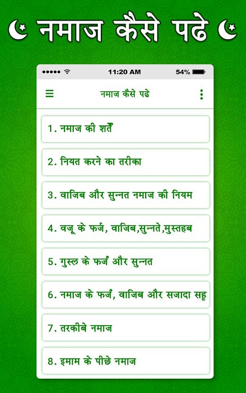 यह ऐप बहुत ही प्रमाणिक रूप से "नमाज" (प्रार्थना) करने के शिष्टाचार और सही तरीके का वर्णन करता है। लेखक ने अपने नमाज शुरू करने से पहले की तैयारी प्रक्रियाओं को बहुत पर्याप्त रूप से समझाया है। ऐप की सामग्री मुफ्ती द्वारा सत्यापित है।