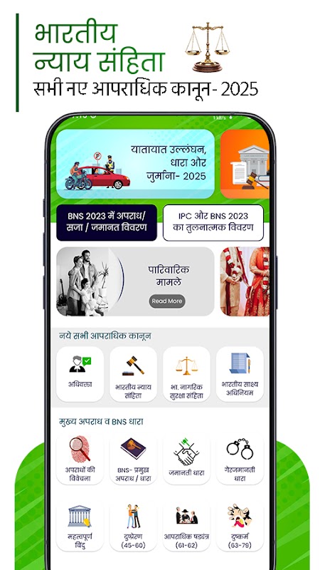 برنامه یادگیری حقوق نهایی برای دانشجویان حقوق، وکلا، متقاضیان قوه قضاییه، داوطلبان UPSC و دانشجویان آزمون رقابتی. این برنامه Moter ACT IPC Indian Penal Code 1860) و BNS भारतीय न्याय संहिता (Bns در مقابل IPC) را به دو زبان هندی و انگلیسی ارائه می کند و آن را به جامع ترین و معتبرترین منبع مطالعه قانون تبدیل می کند.