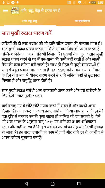 This app gives the Remedies and Upays for Sade Sati, Ashtama Shani, Shani dhaiyya, Kantaka Shani, Shani Mahadasha.