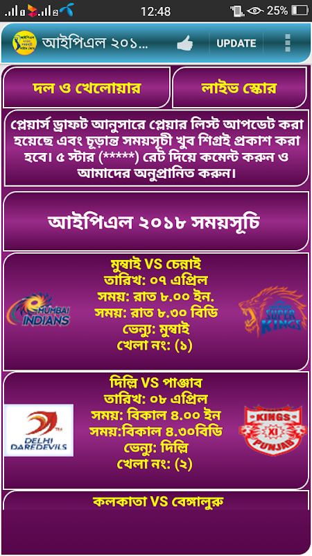 اطلاعات আইপিএল ২০১৮ সময়সূচী - IPL 2018 Schedule APK