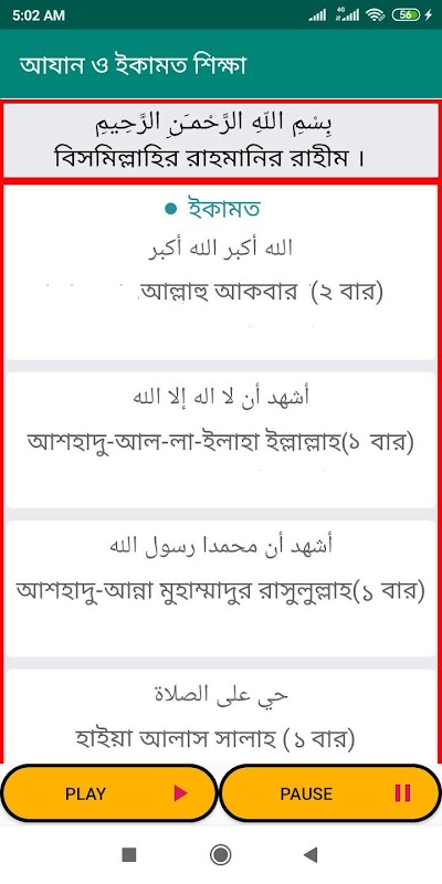 اطلاعات আযান ও ইকামত(অডিও সহ) এর নিয়ম-কানুন APK