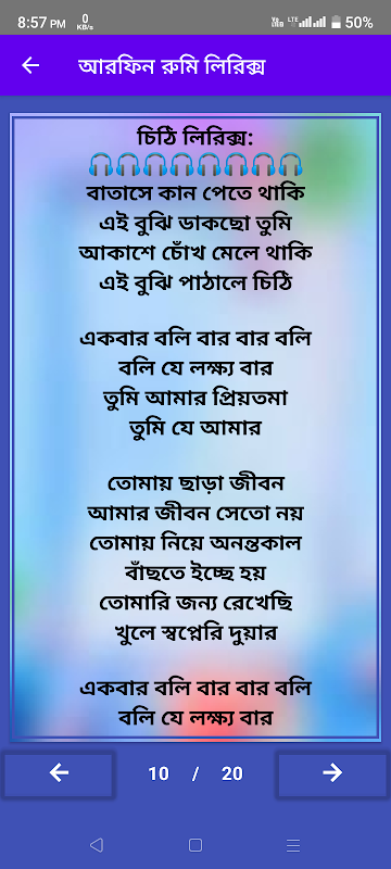 আমাদের এই অ্যাপে কণ্ঠশিল্পী আরফিন রুমির জনপ্রিয় লিরিক্স গুলো উপভোগ পারবেন পারবেন পারবেন