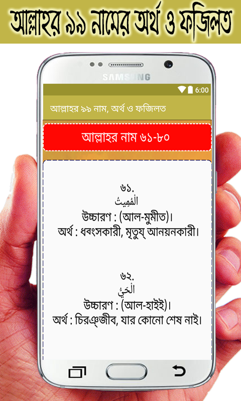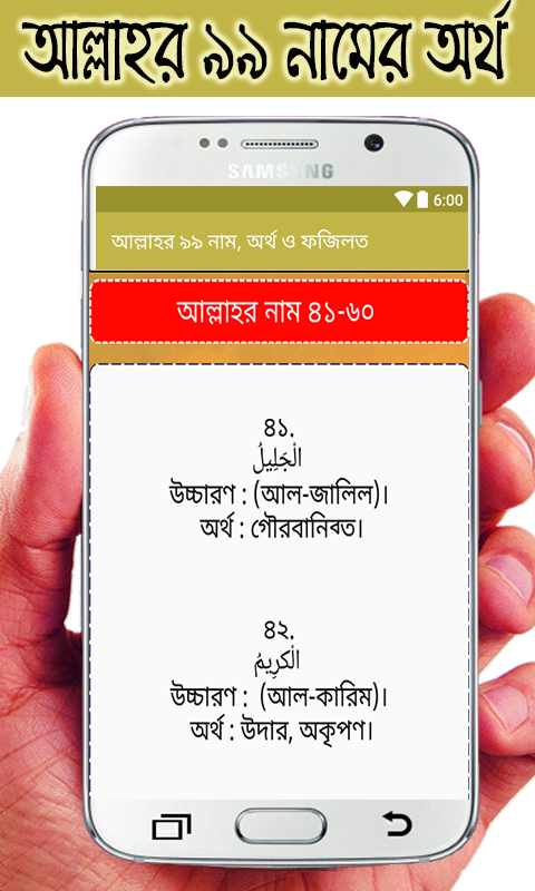 আপনারা এই অ্যাপ এর মাধ্যমে আল্লাহর ৯৯ নামের, অর্থ ও ফজিলত সম্পর্কে জানতে পারবেন।