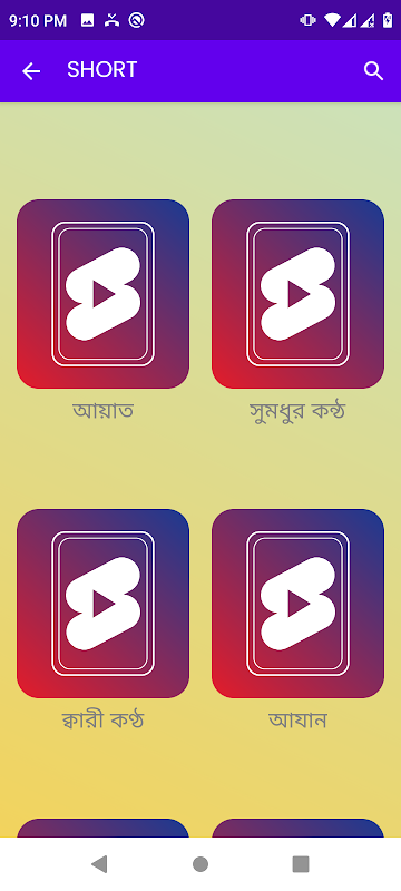 در این دسته فیلم هایی با معنی بنگالی از تلاوت آیات 1 تا 30 قرآن کریم با صدای برترین قاریان جهان وجود دارد. این اپلیکیشن تلاوت های صوتی قرآن توسط قاریان (قاریان) مختلف را در سبک ها و تلفظ های مختلف ارائه می دهد.