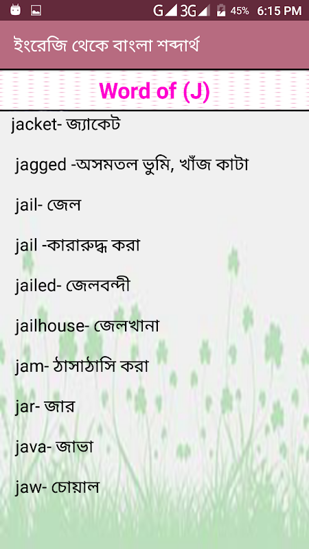 ✔ ইংরেজি শব্দের বাংলা অর্থ