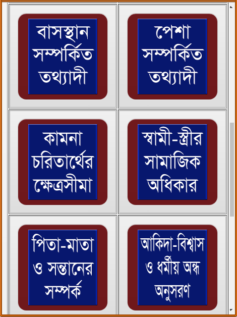 এই অ্যাপটি যে অধ্যায়গুলো দিয়ে সাজানো হয়েছে সেগুলো হচ্ছেঃ