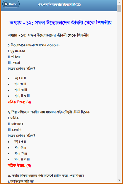 নবম-দশম শ্রেণীর ব্যবসায় উদ্যোগ বিষয়ের নৈর্ব্যক্তিক প্রশ্নোত্তর নিয়ে এই অ্যাপ।