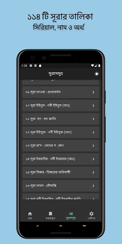 একটি ডিজিটাল অ্যাপ তাই একটিমাত্র আপনি আপনি কুরআনের শান ، শান এ নুযুল ও কুরআনের তাফসীর বা তাফসীরুল কুরআনও পাচ্ছেন এই অ্যাপ আপনি শুধু কুরআন পড়ার সুবিধা পাচ্ছেন না আপনার চোখের ক্ষয় রোধের জন্য আমরা নিয়ে লাইট-মুড ও ডার্ক-মুড দিনের বেলা-মুড ব্যবহার করে পড়তে পারবেন অথবা অতি অন্ধকারে ইচ্ছে ইচ্ছে ব্যবহার করতে পারেন ডার্ক মুডের-মুডের লোকেদের জন্য আমরা লেখা বড়-ছোট করার সুবিধাও দিতে পারছি। কতোদূর পড়লেন ও আপনাদেরকে কুরআন পড়তে সাহায্য করতে বুকমার্ক সুবিধা নিয়ে এসেছি এবং বাছাইকৃত তালিকা দেখার সুযোগ সময় চাইলে সেগুলো আবার মুছে ফেলা যায়। গেলে আল্লাহর চমৎকার ও ঐশী গ্রন্থকে আপনার সামনে আরো সুন্দর ও গচ্ছিত রূপে নিয়ে আসার জন্যে এতো